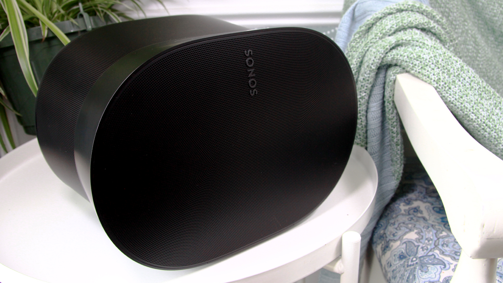 Plant-battling woofers aside, the speaker also has four tweeters to fire off high and mid-range frequencies in different directions, including an upward-firing tweeter to bounce sound off the ceiling. That's essential for a truly enveloping spatial audio experience.
