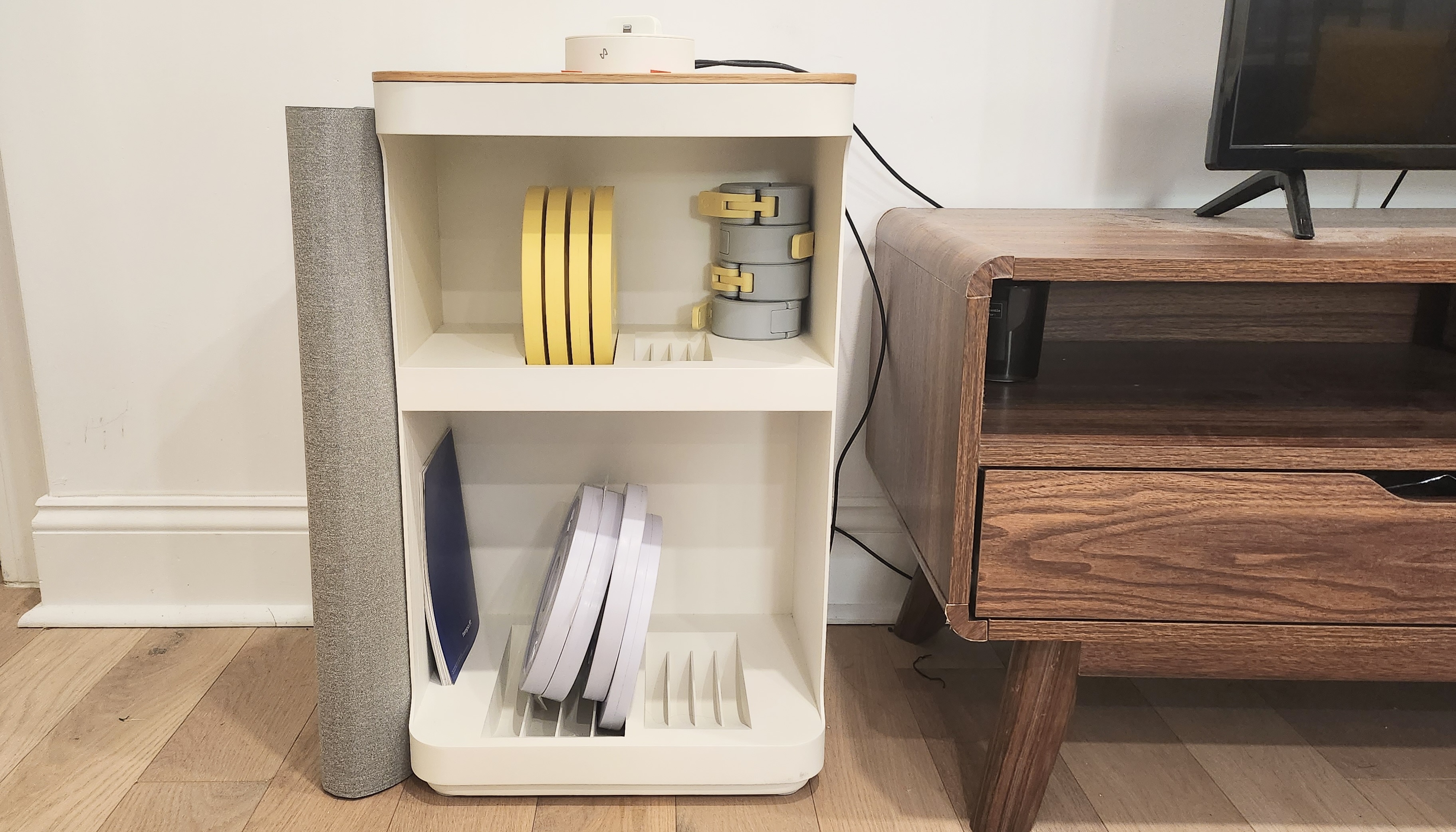 The Tempo Move is space-conscious, which is ideal if you're in a smaller living space or live with roommates. The storage cabinet stands just a few inches above my entertainment center without awkwardly jutting out. With its light wood build and gray magnetic cover, it blends perfectly with my Wayfair-chic living space.