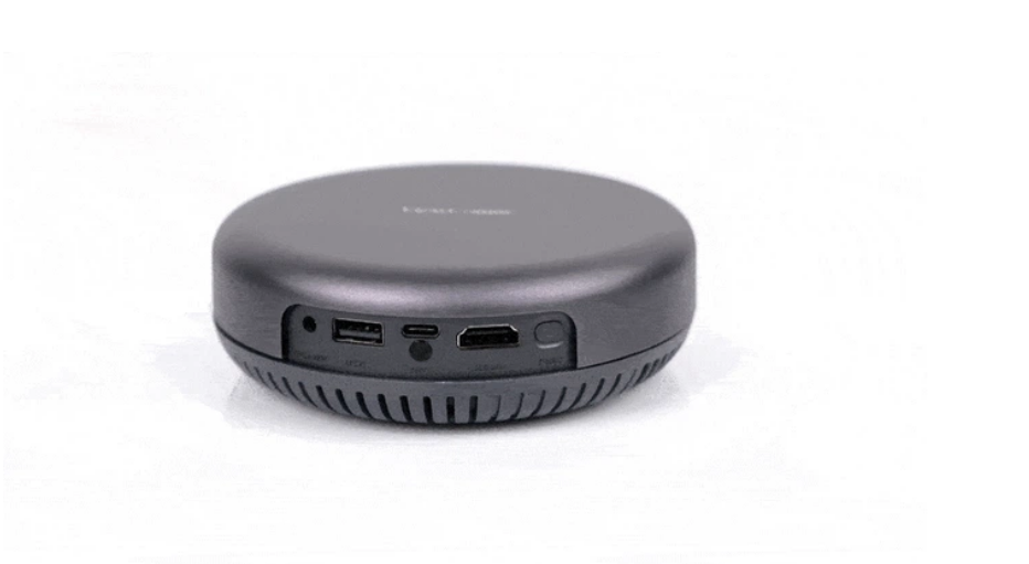 This is a compact projector that will go anywhere. Its dimensions are 130mm in diameter, 42mm in height, and 425g in weight.