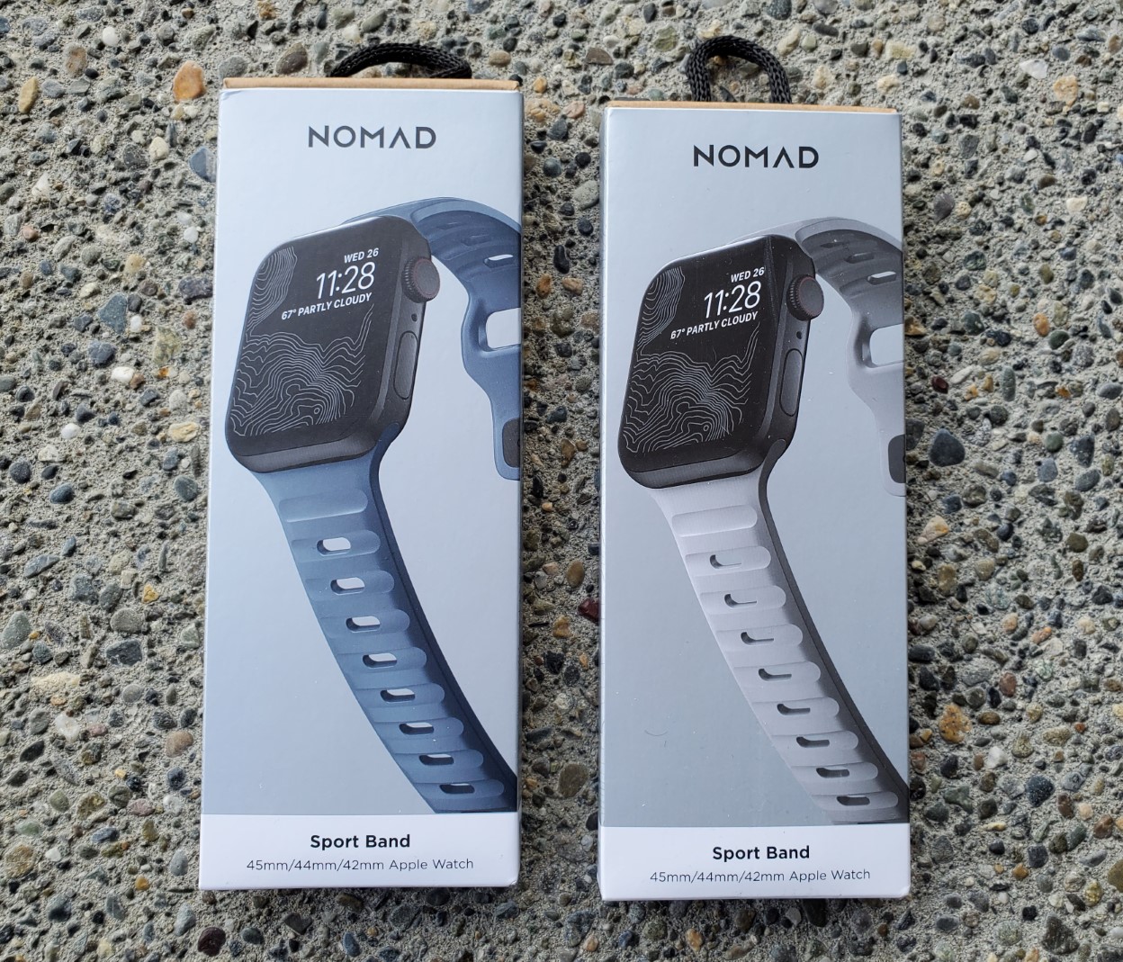 Apple Sport bands are $49 and offer a minimalist design with a solid soft fluoroelastomer material. A small round pin secures the band on your wrist. Nomad's new Sport Band is priced at $59.95 and also uses a fluoroelastomer material. The Nomad Sport Band material is a bit thicker, has openings cut in the band for ventilation, and has concave sections in the band to support the flow of air and sweat so the Nomad option is better for those who work out with their Apple Watch.