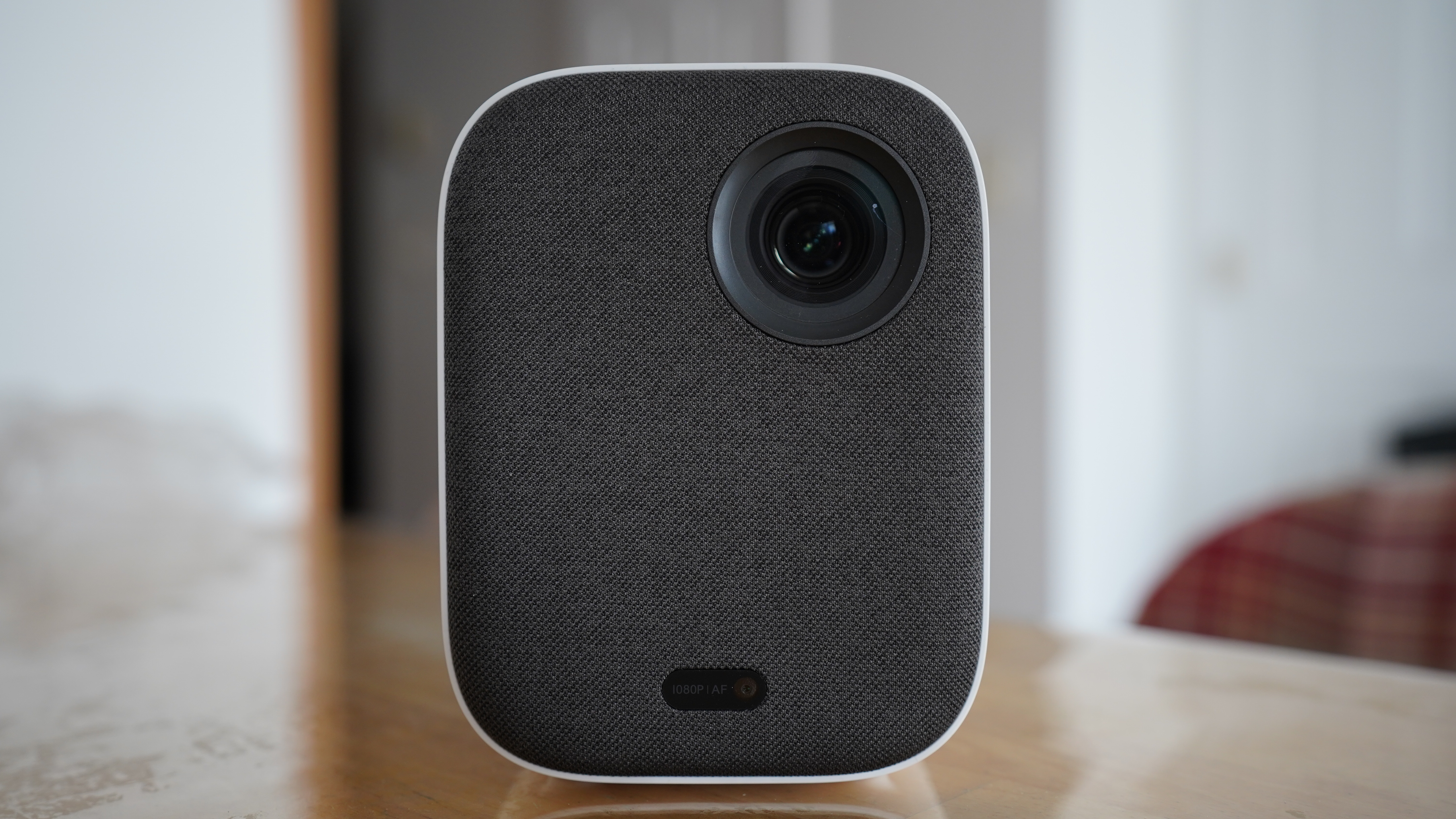 With portable projectors, manufacturers tend to focus more on video quality and less on design and build quality. That isn't the case with the Xiaomi. The projector is surrounded with a frosted, matte-white coating and a gray, mesh fabric on the front. Porous grills are scattered throughout the media player, allowing for clearer sound and more effective heat dispersion. Together, you have an effective, minimalistic gadget that looks great on any piece of furniture.