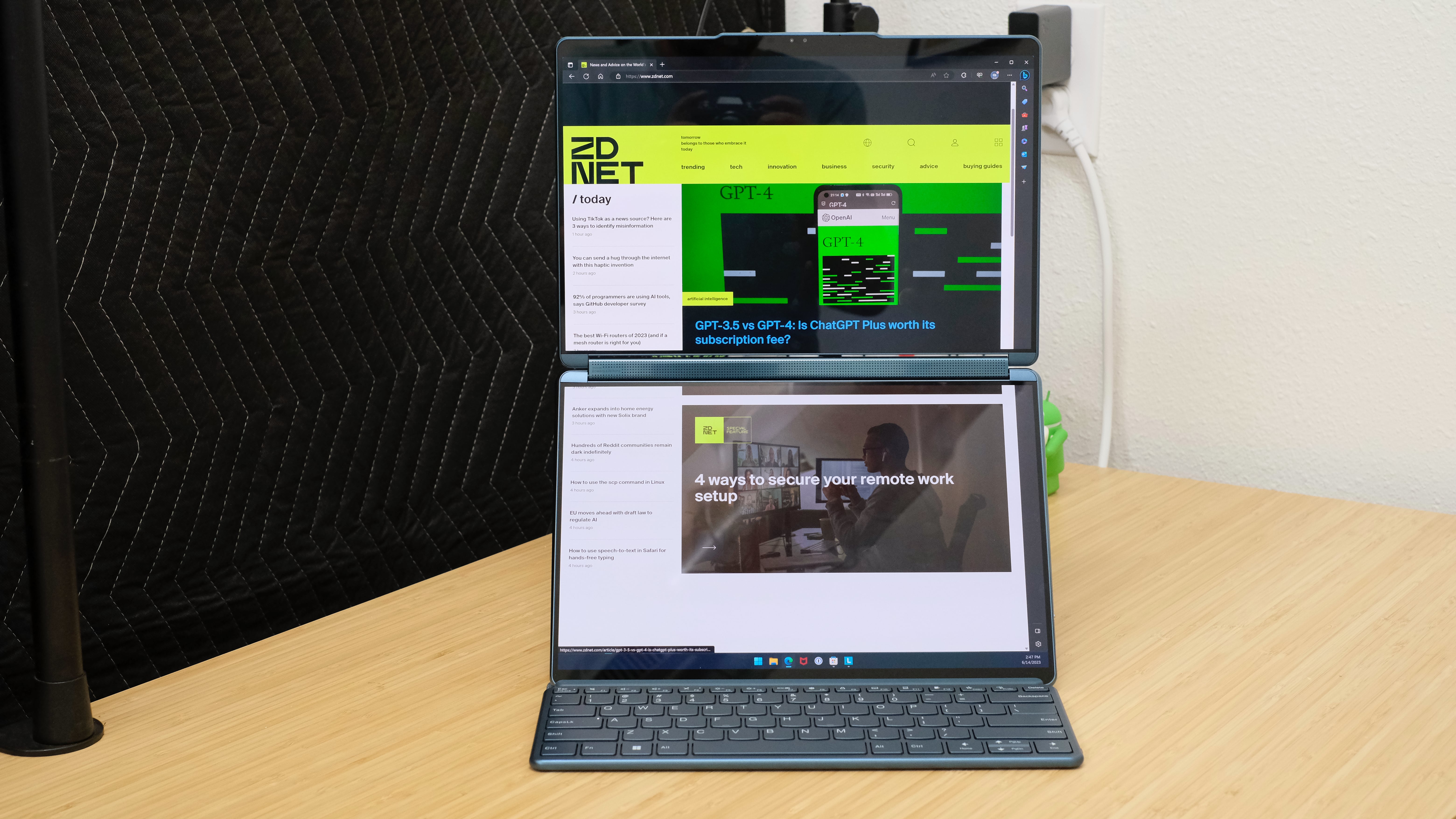 I spent most of my time on the Yoga Book 9i doing typical computing tasks; browsing the web, streaming videos and music, writing, and a couple of quick photo edits. Even when doing all of that, moving windows between the displays, and relying on a digital trackpad for the full-sized keyboard, I never noticed the Yoga Book 9i slowing down.