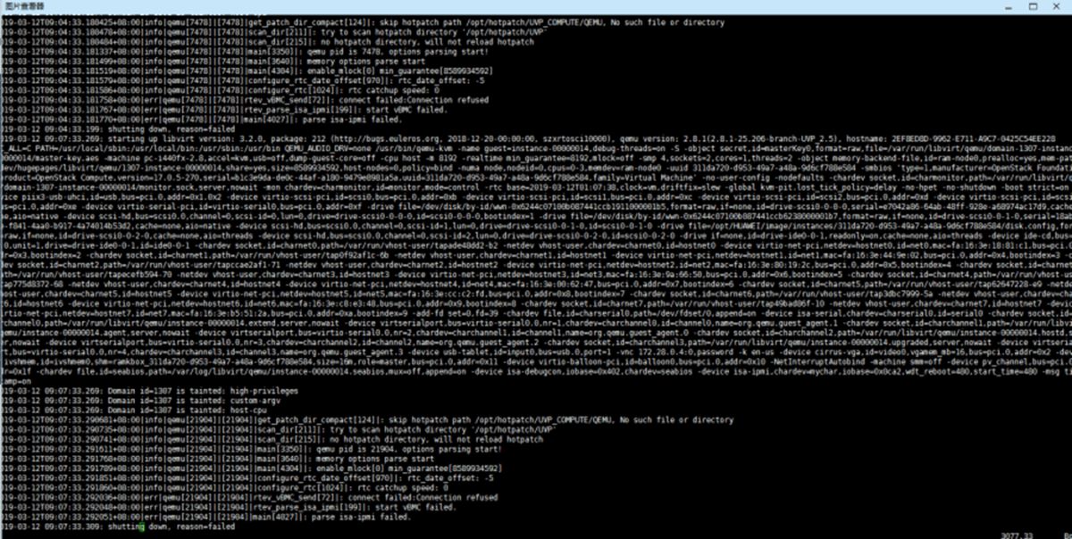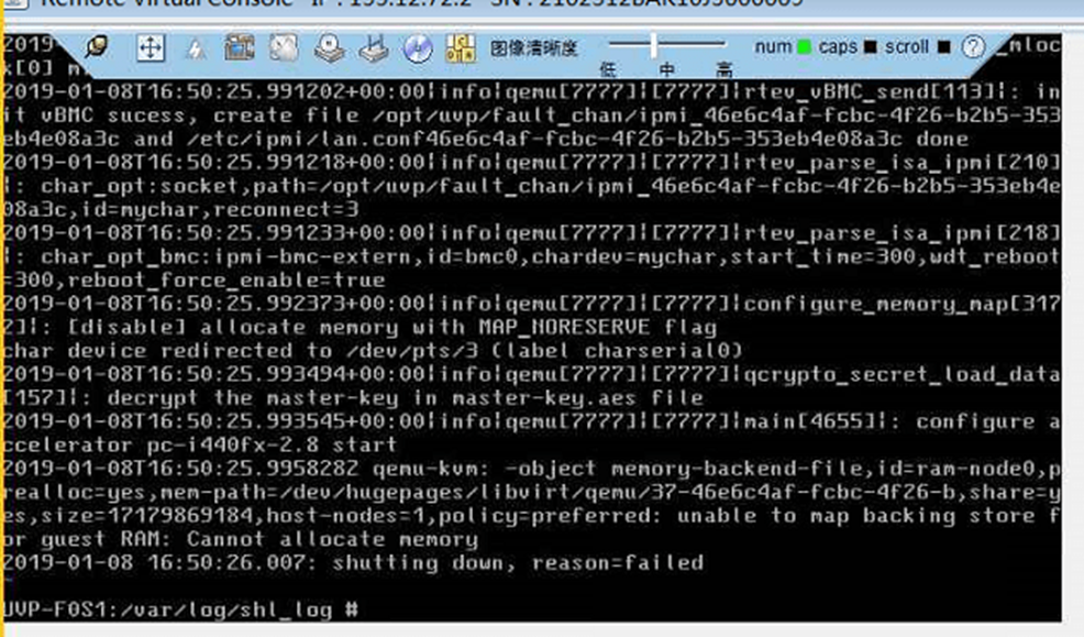 1. Insufficient memory leads to failure, take instance-00001840 VM for example, the /var/log/libvirt/qemu/instance-00001840.log log is as follows: