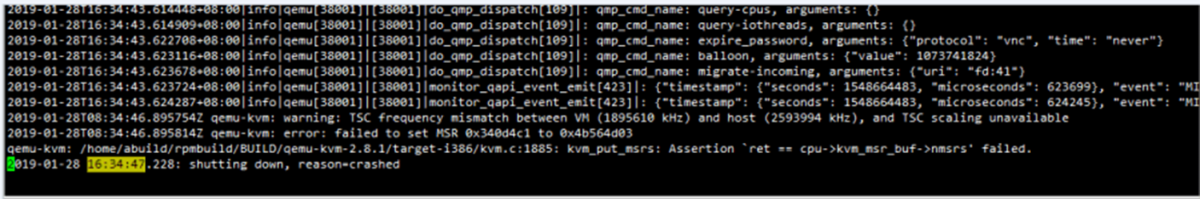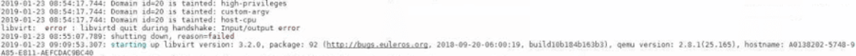 5. Hibernation wakeup host main frequency is different resulting in virtual machine startup failure, /var/log/libvirt/qemu/instance-00001840.log log as follows:
