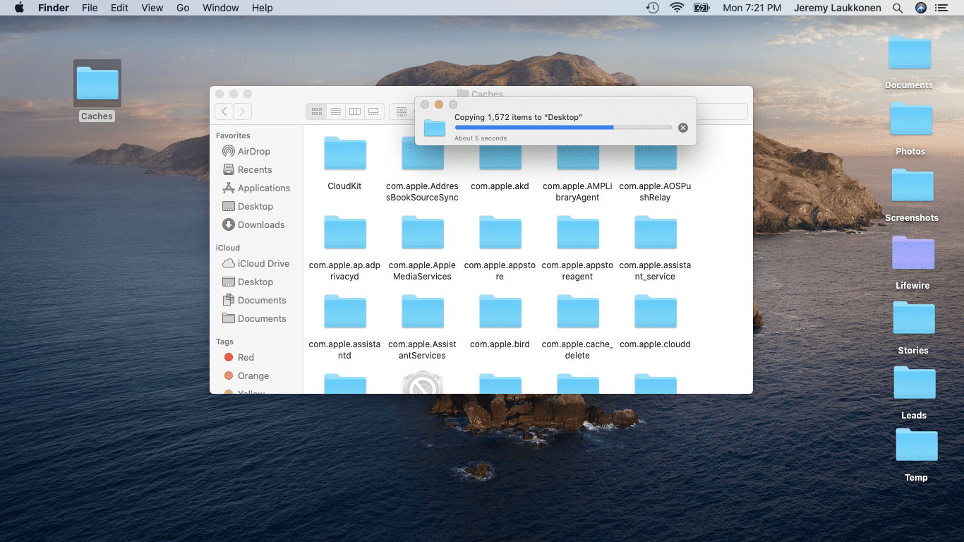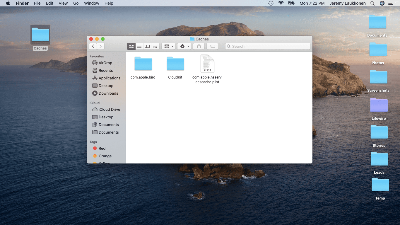 To prevent any possible issues, drag the Caches folder to your desktop temporarily before deleting anything. If you experience problems, you can simply drag it back and delete one thing at a time.