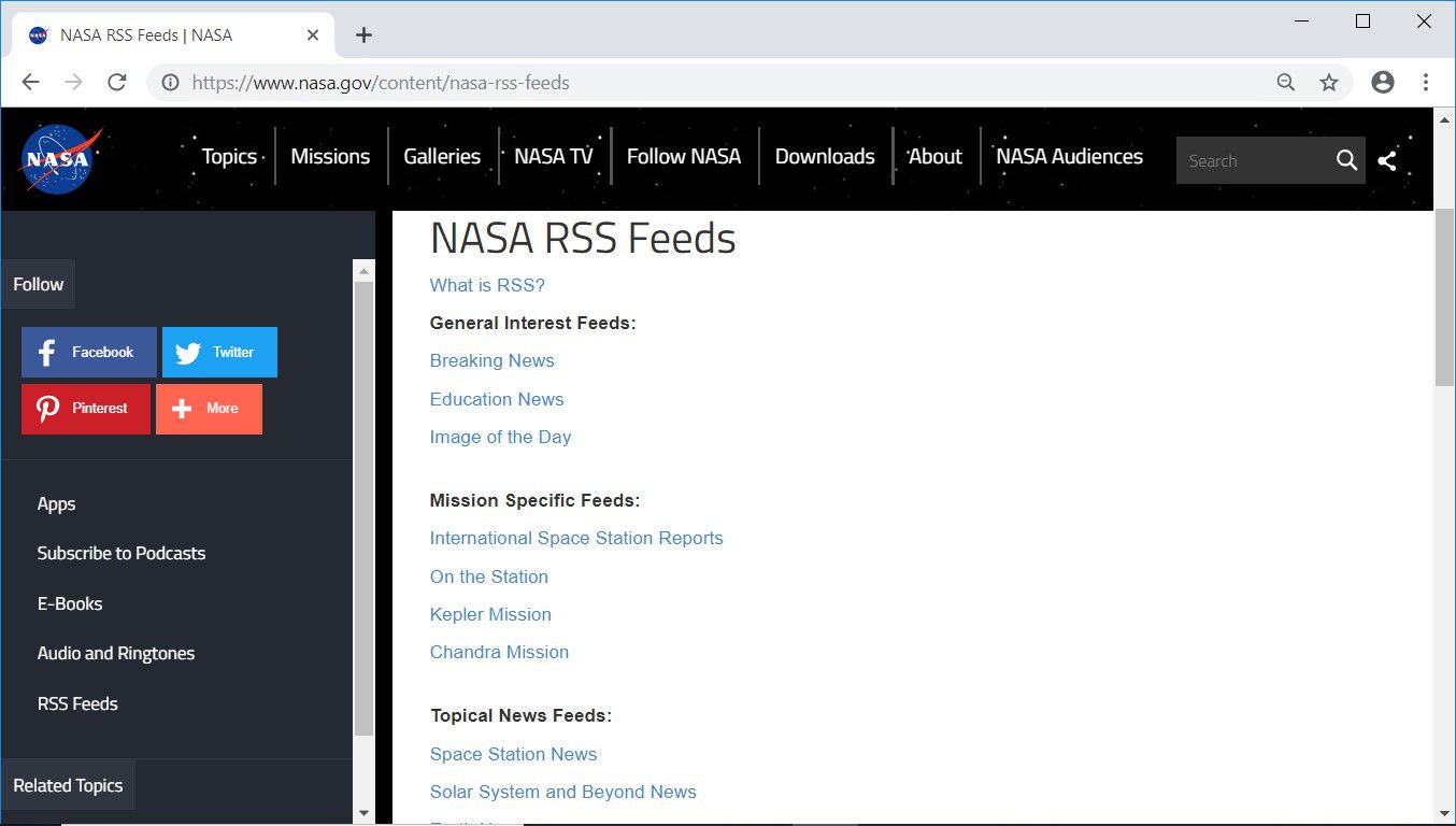 Some sites offer lists of RSS feeds. These lists may include different topics for an extensive website, or list feeds from many websites that cover a similar topic.