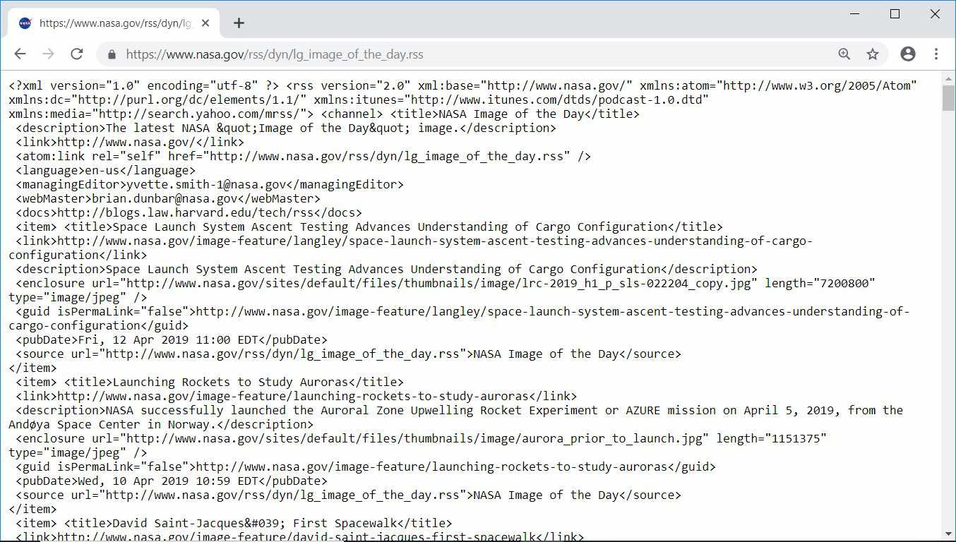 When you find an RSS feed that sounds interesting, click the RSS icon or link to display the XML file that controls a website's feed. You'll use this RSS link to subscribe to the feed in an RSS reader.