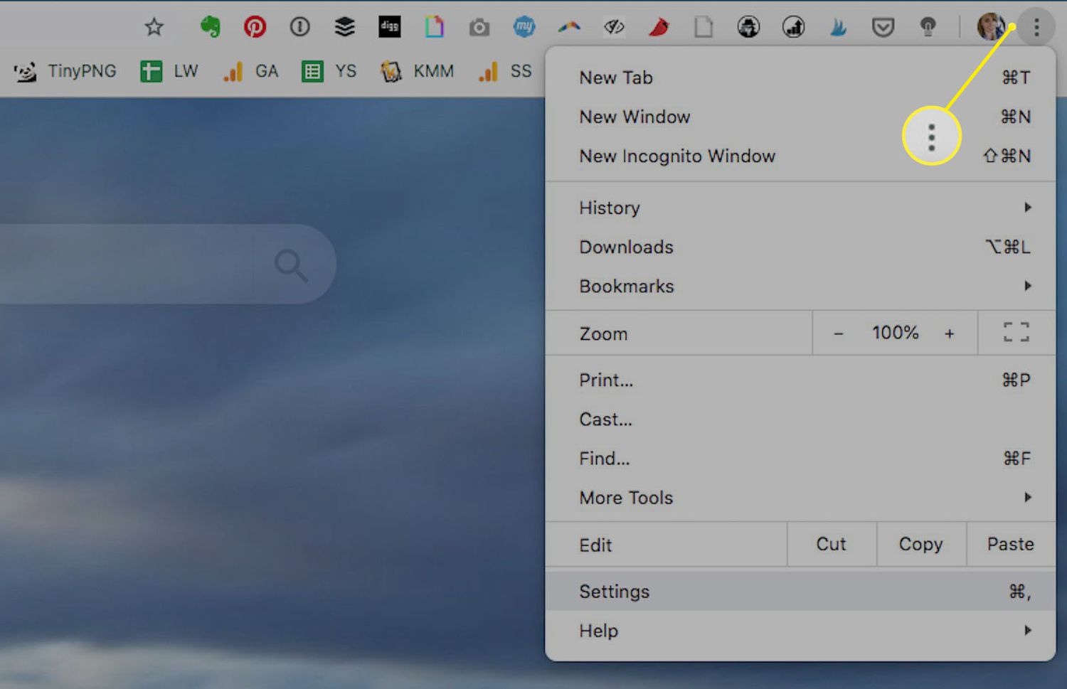 - In the Chrome browser, select the three vertical dots (More icon) in the upper-right corner.