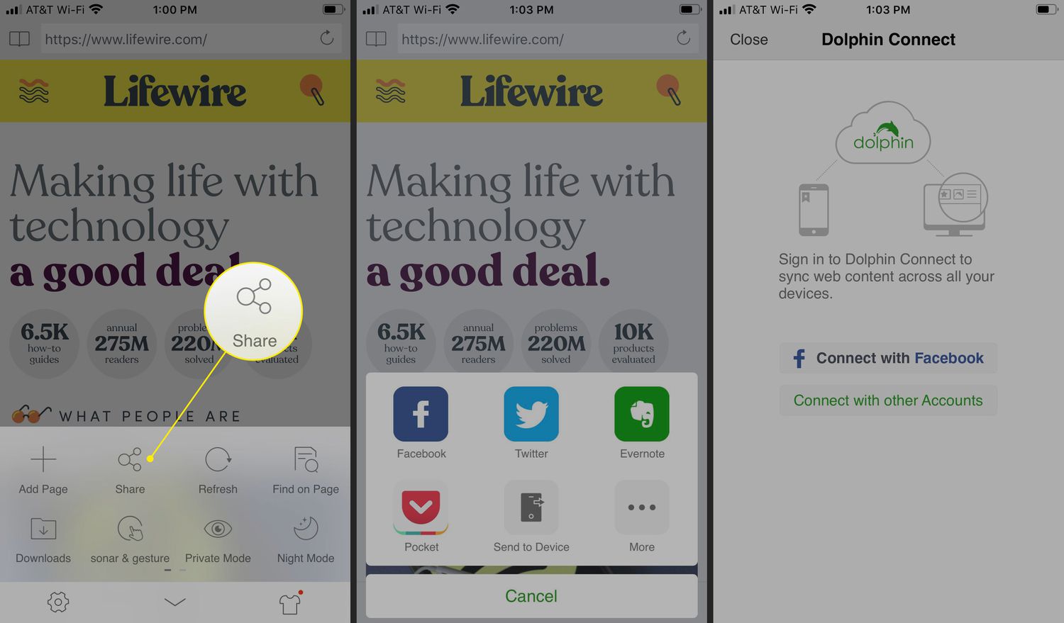 You can also sync and share Dolphin content with Evernote, Facebook, and Pocket.