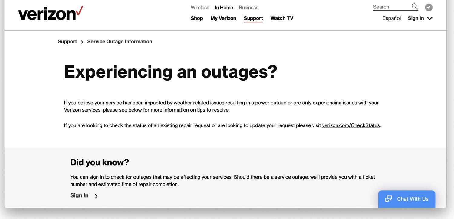 Alternatively, ISP issues often fix themselves. You can try waiting it out in case there's an unannounced issue on Verizon's end. Hopefully, the problem will be fixed reasonably quickly.