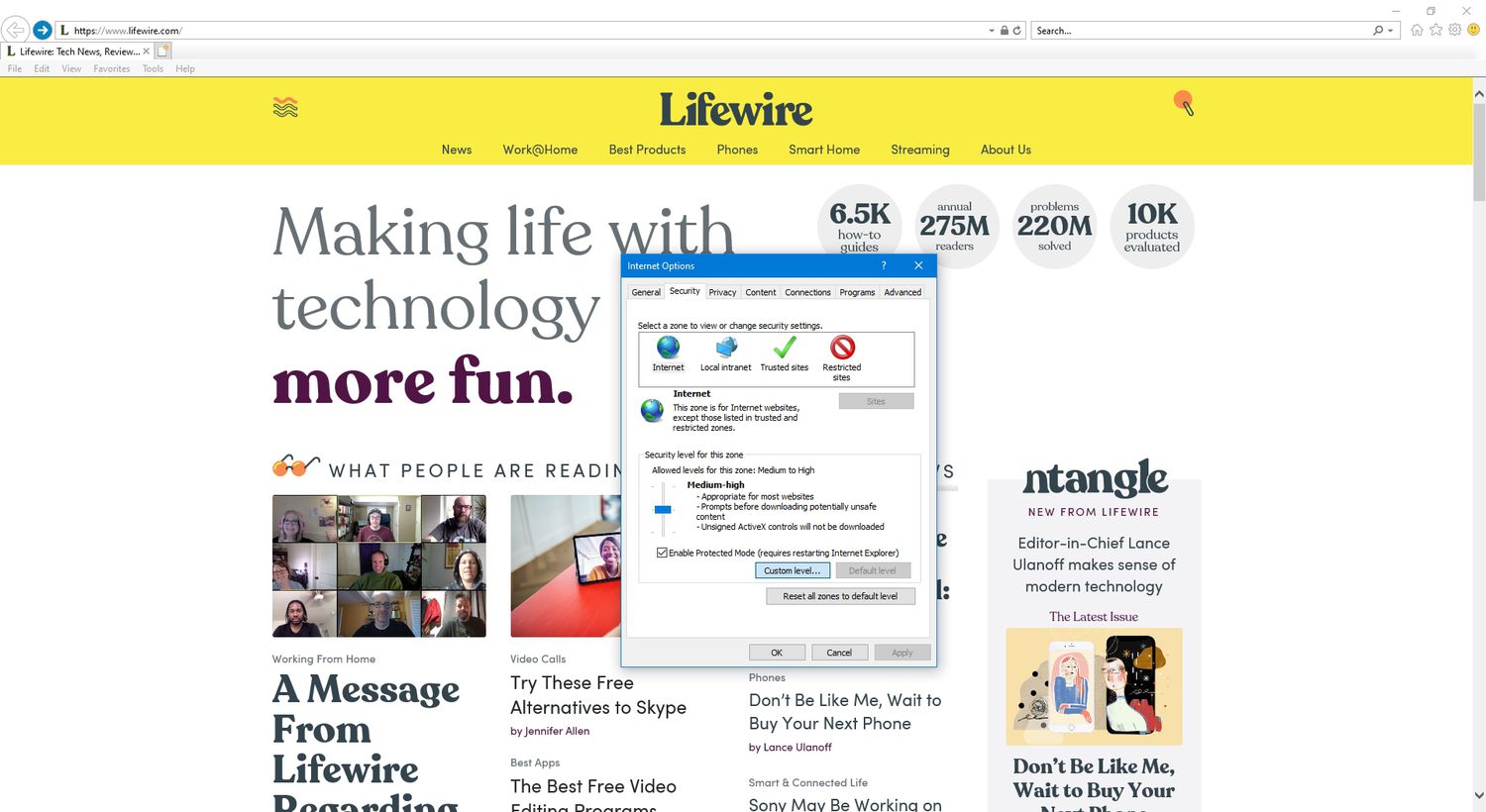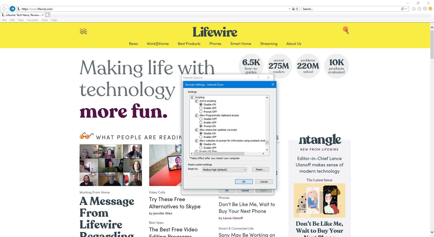 Select Custom level located in the Security level for this zone section to display the Internet Zone security settings. Scroll down until you locate the Scripting section.