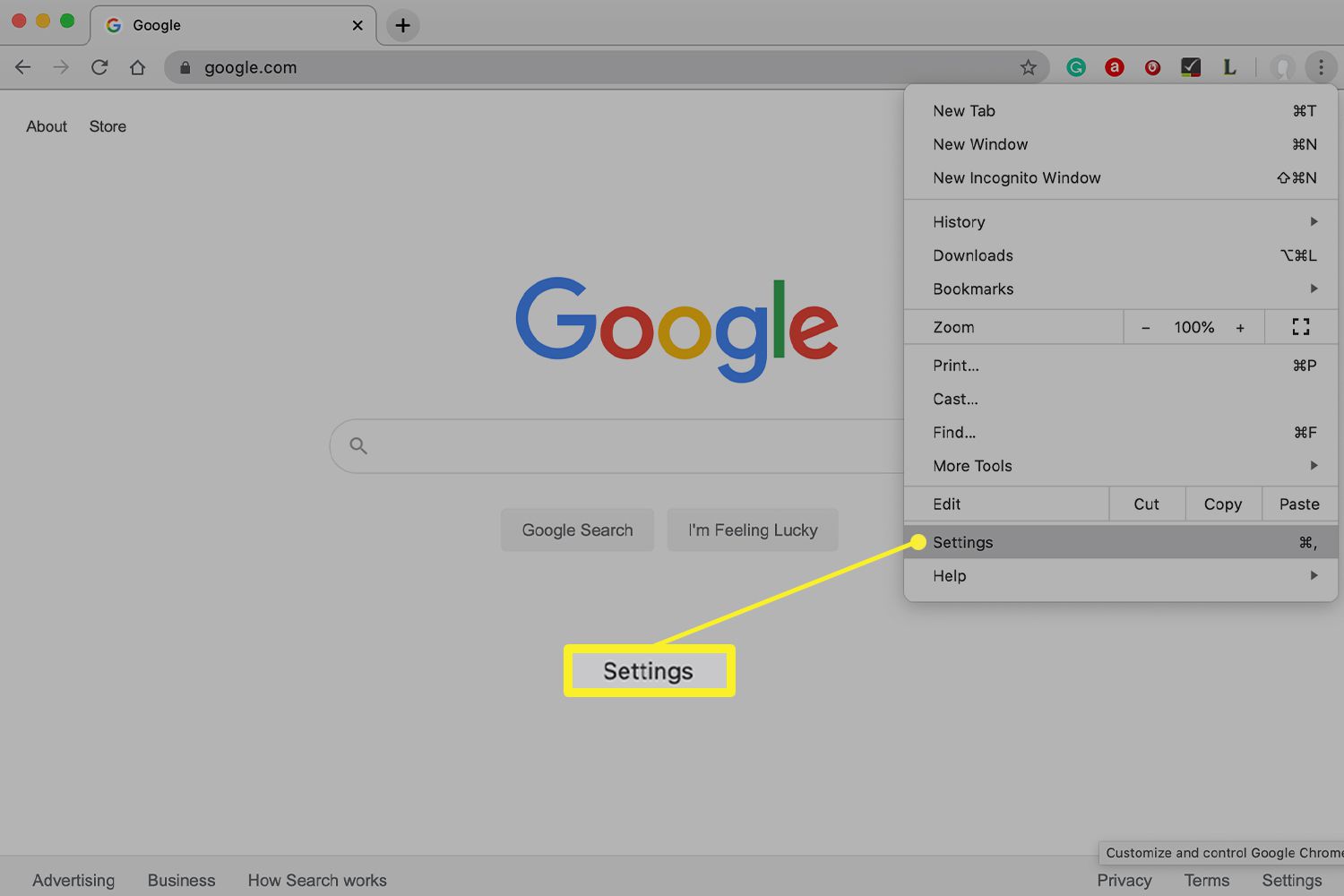 Select Settings in the pop-up menu to display the Chrome Settings.