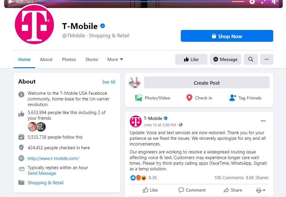 Check T-Mobile's Facebook page for any status updates as a last-ditch effort. This page is supposed to be updated hourly and only really lists massive outages, not smaller, localized issues.