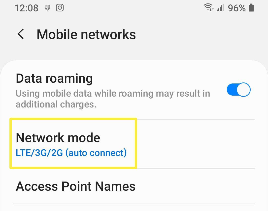 To check yours on Android phones, go to Settings > Connections > Mobile networks to view the Network mode setting. If you need to change the setting, tap Network mode, and make your selection.