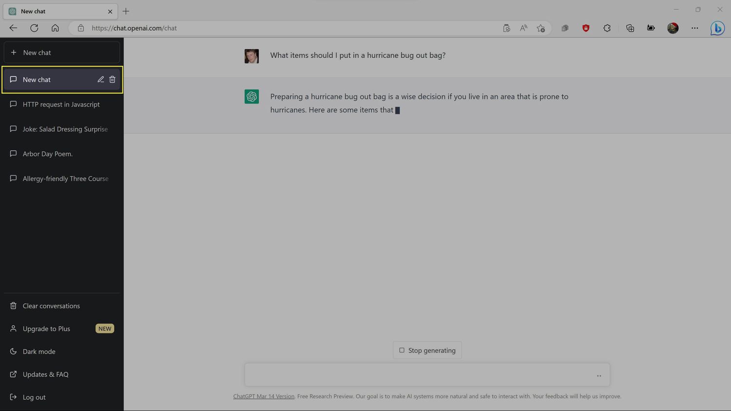 The old ChatGPT thread will open, allowing you to read it or submit new prompts to continue the conversation.