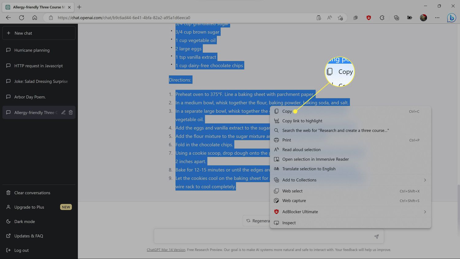 You can now paste the ChatGPT conversation into a text document using the app of your choice, paste it into an email, share it via social media, or do whatever else you want with it.
