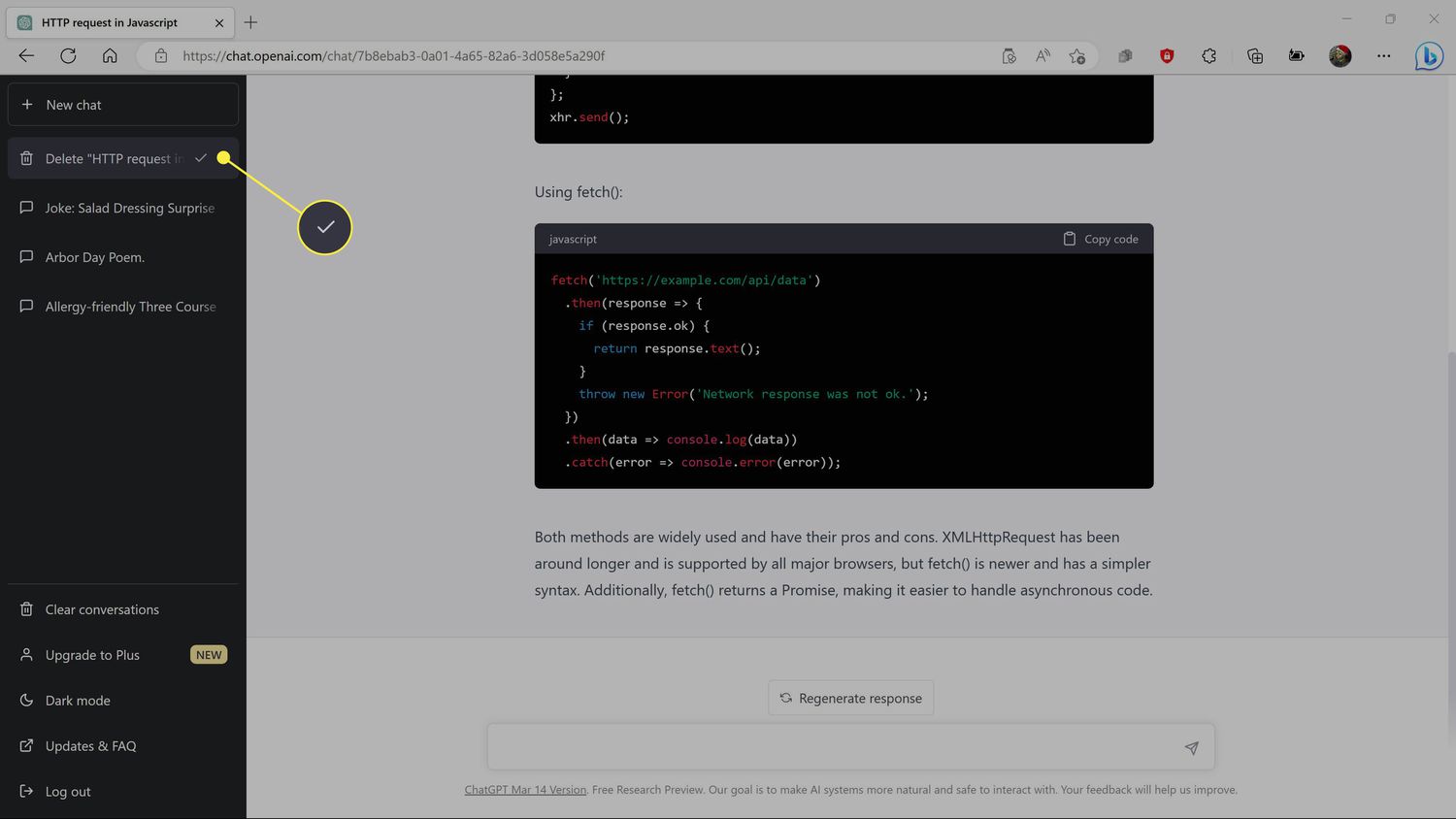 On ChatGPT's site, click the title of a saved chat you want to delete.