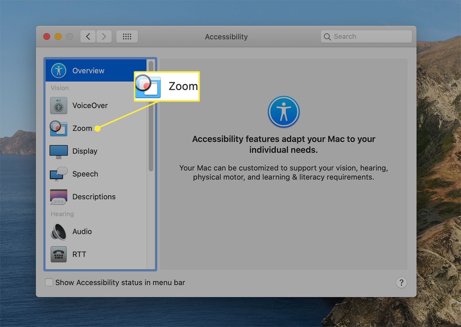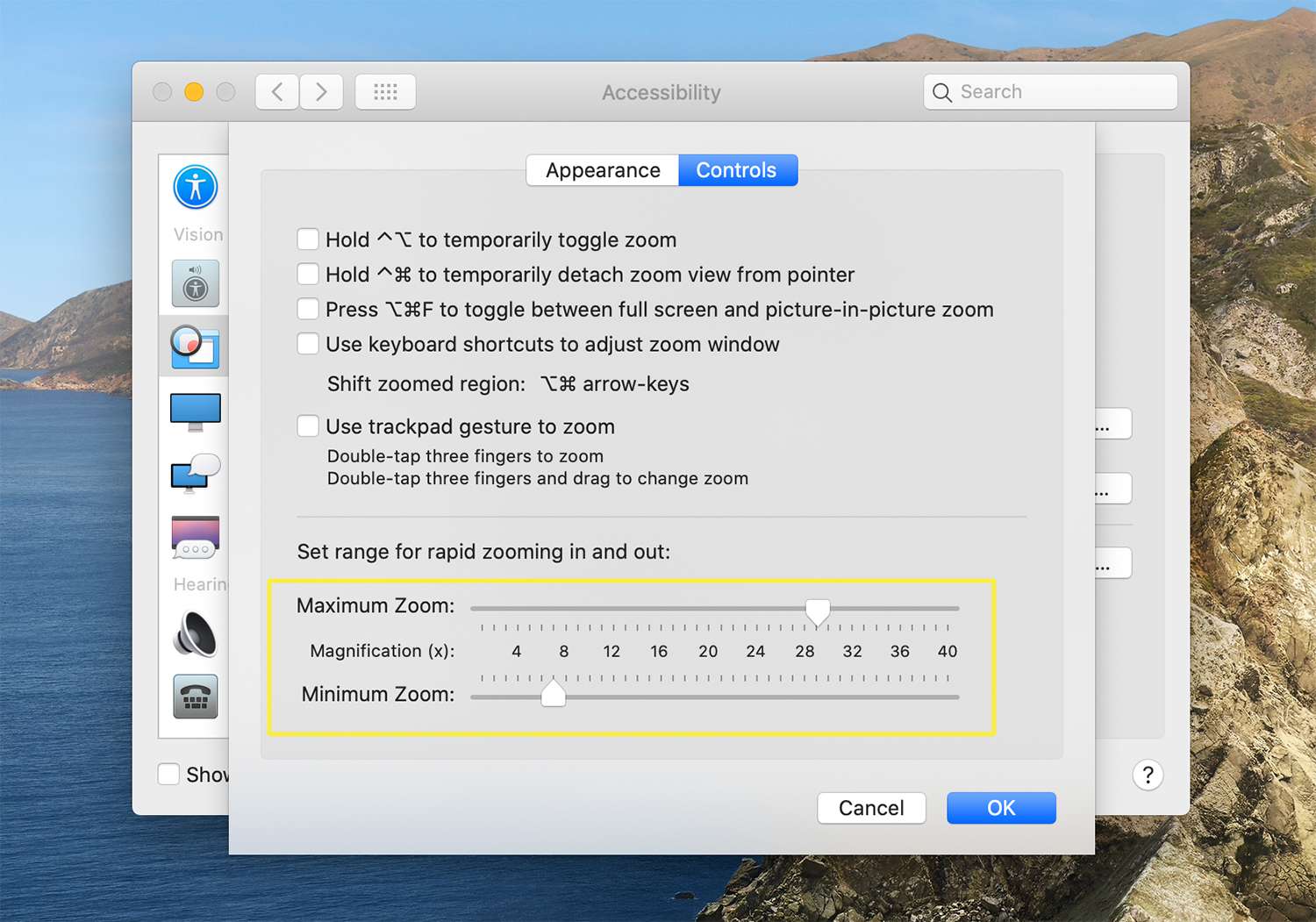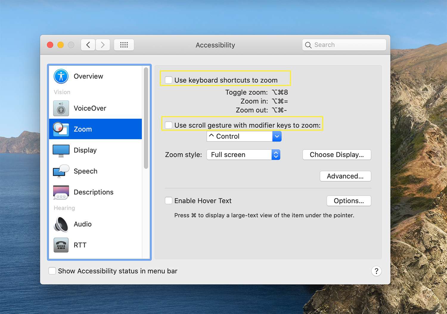 - On a Mac, go to System Preferences > Accessibility > Zoom.