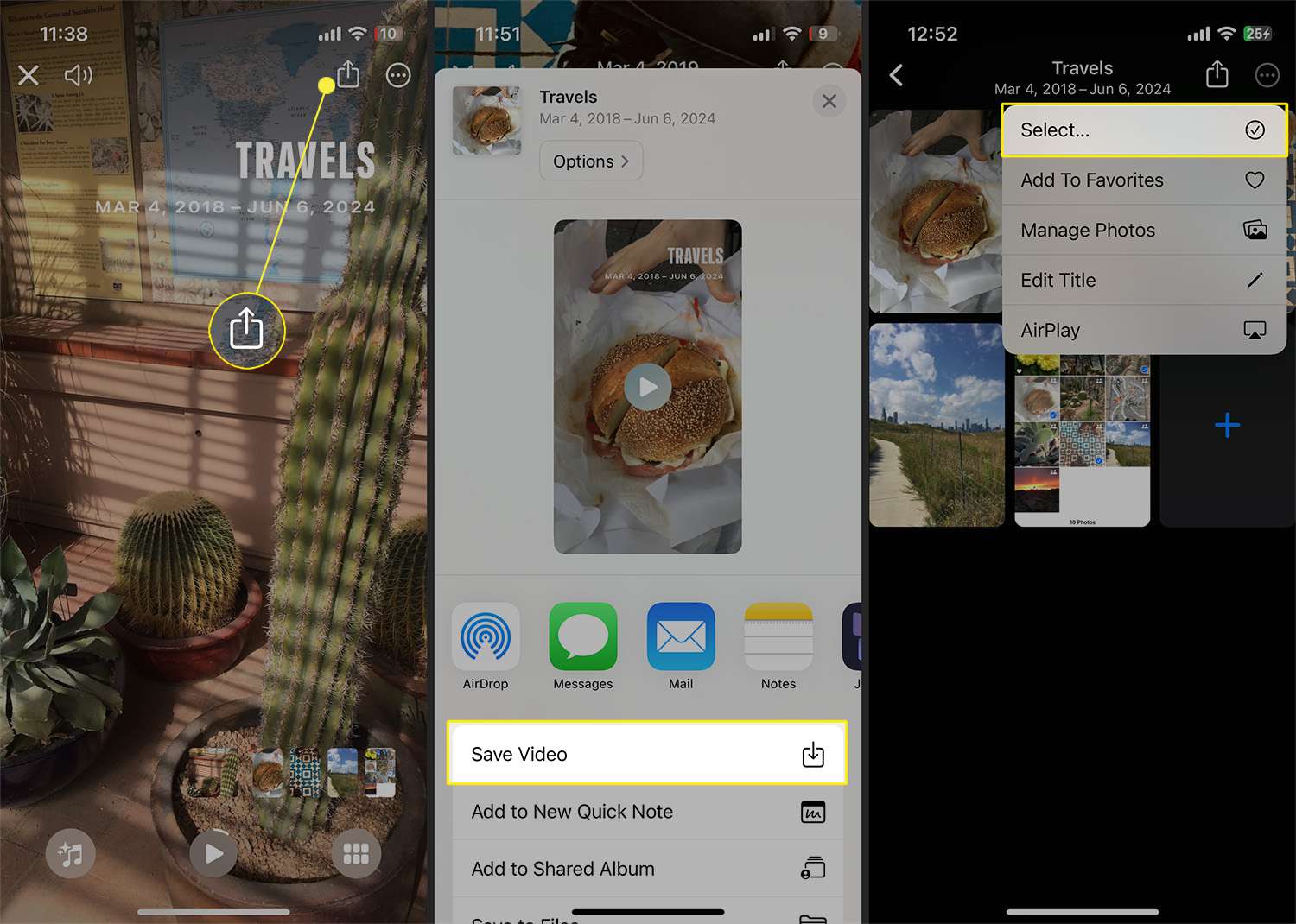- Save as a video file: If you prefer a video file, select Save Video to save the slideshow to your Photos library in video format.