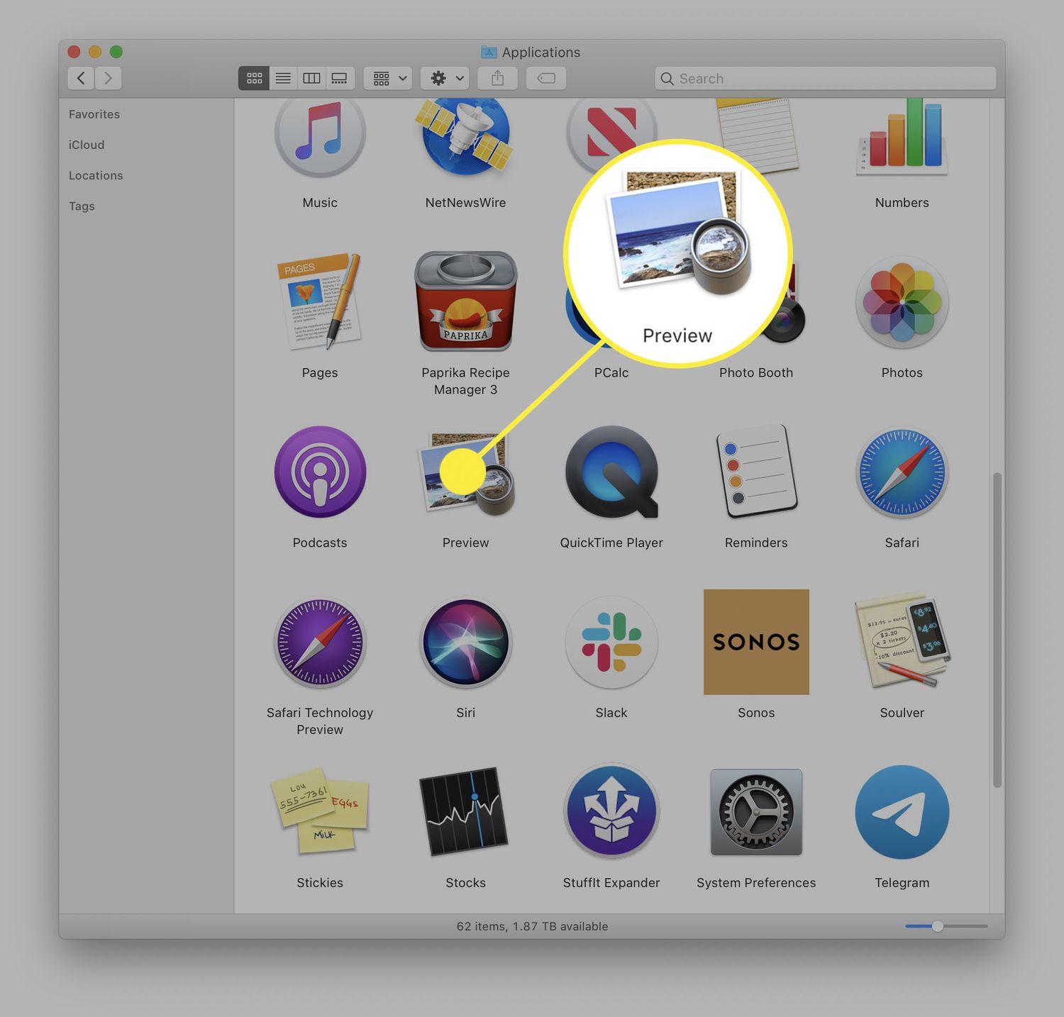 Go to the Applications folder to find and open Preview, or press Command+Space Bar to use Spotlight to search for and launch the app.