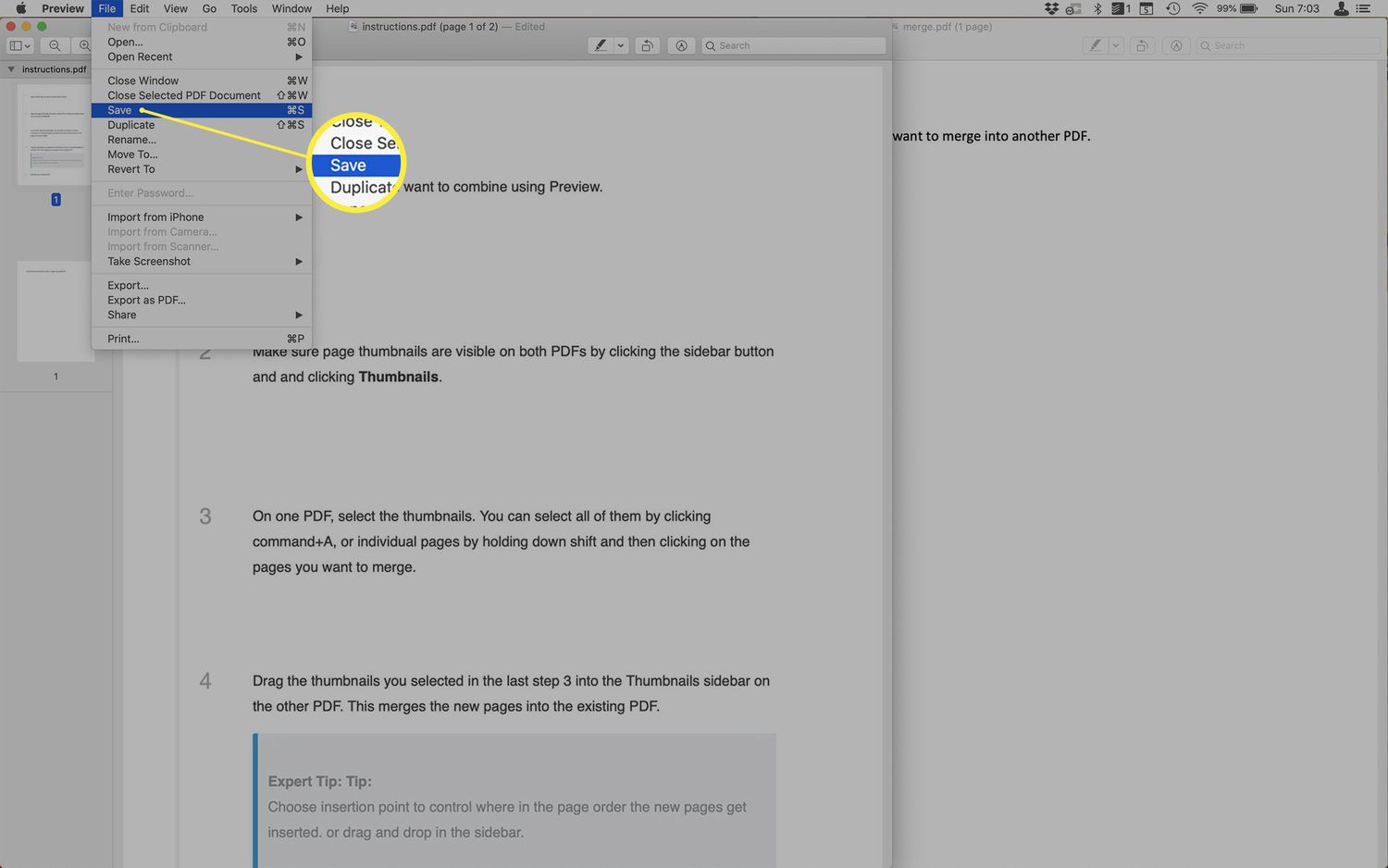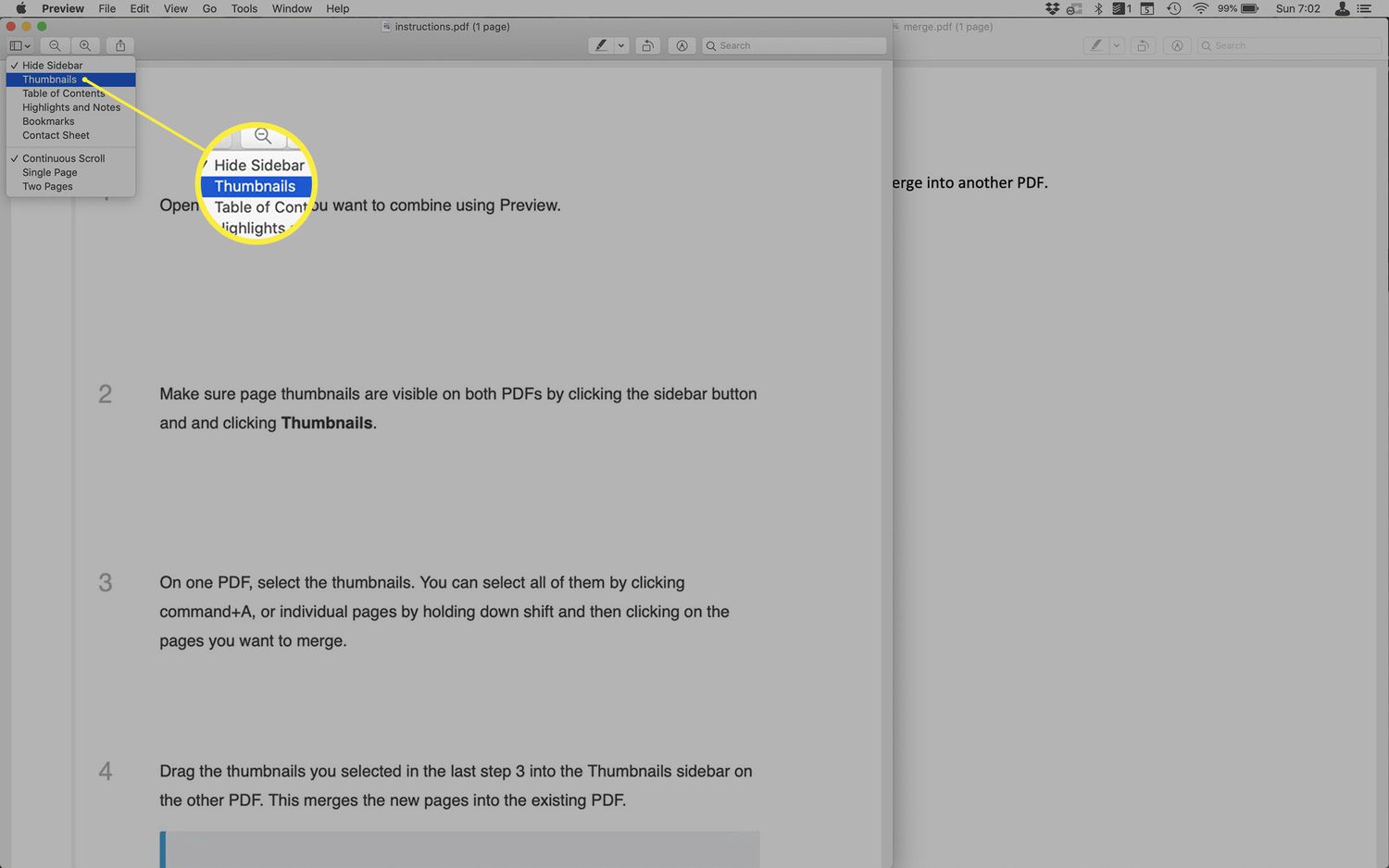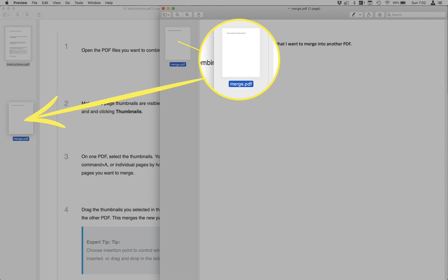 The Preview program that comes pre-installed on every Mac provides a super-simple way to combine PDF files for free. Follow these steps to merge PDFs: