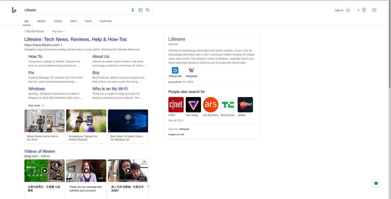 Bing also doesn't always put the latest articles at the top of its search results, and it has a tendency to show older articles instead of more appropriate and recent articles or videos. Google tends to be more consistent about making sure the latest headlines appear at the top of its search results.