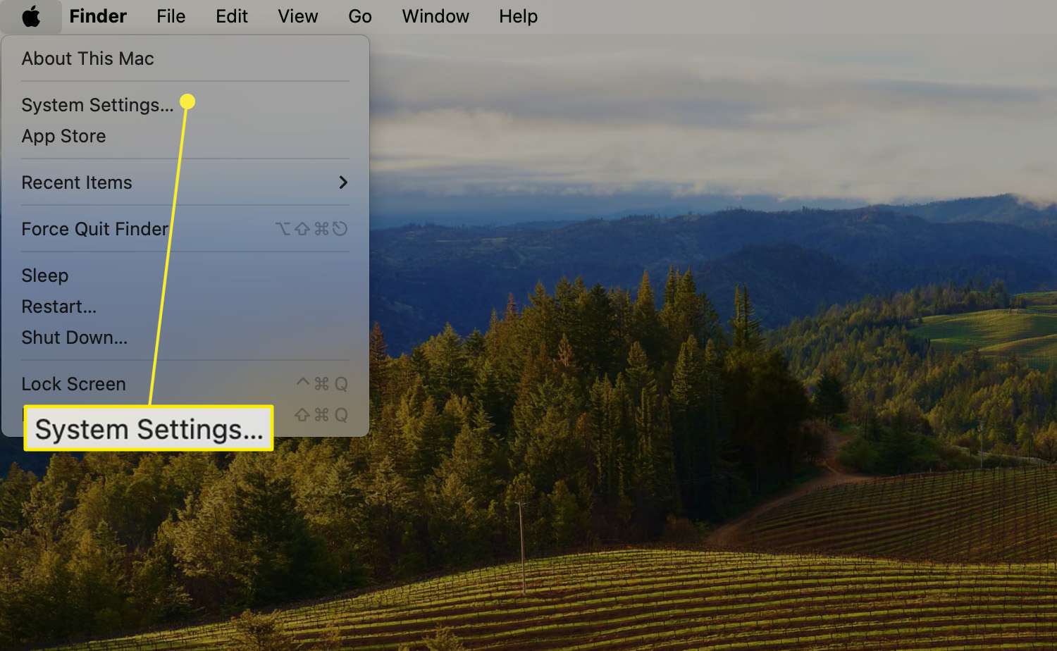 Click the Apple menu in the top left corner, then click System Settings or System Preferences.