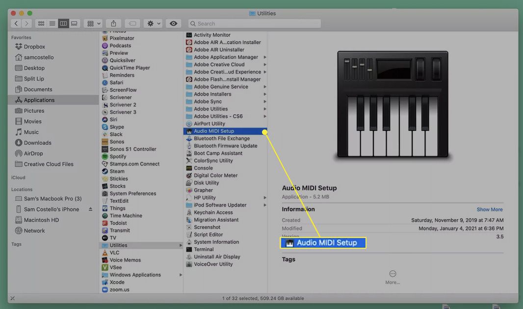 Go to the Finder > Utilities > and launch Audio MIDI Setup.