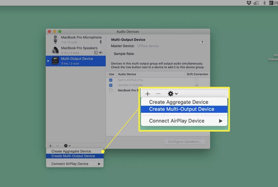 Now, things get a little more complicated. Because the macOS doesn't support audio output to two pairs of AirPods, you need a workaround. Here's what to do: