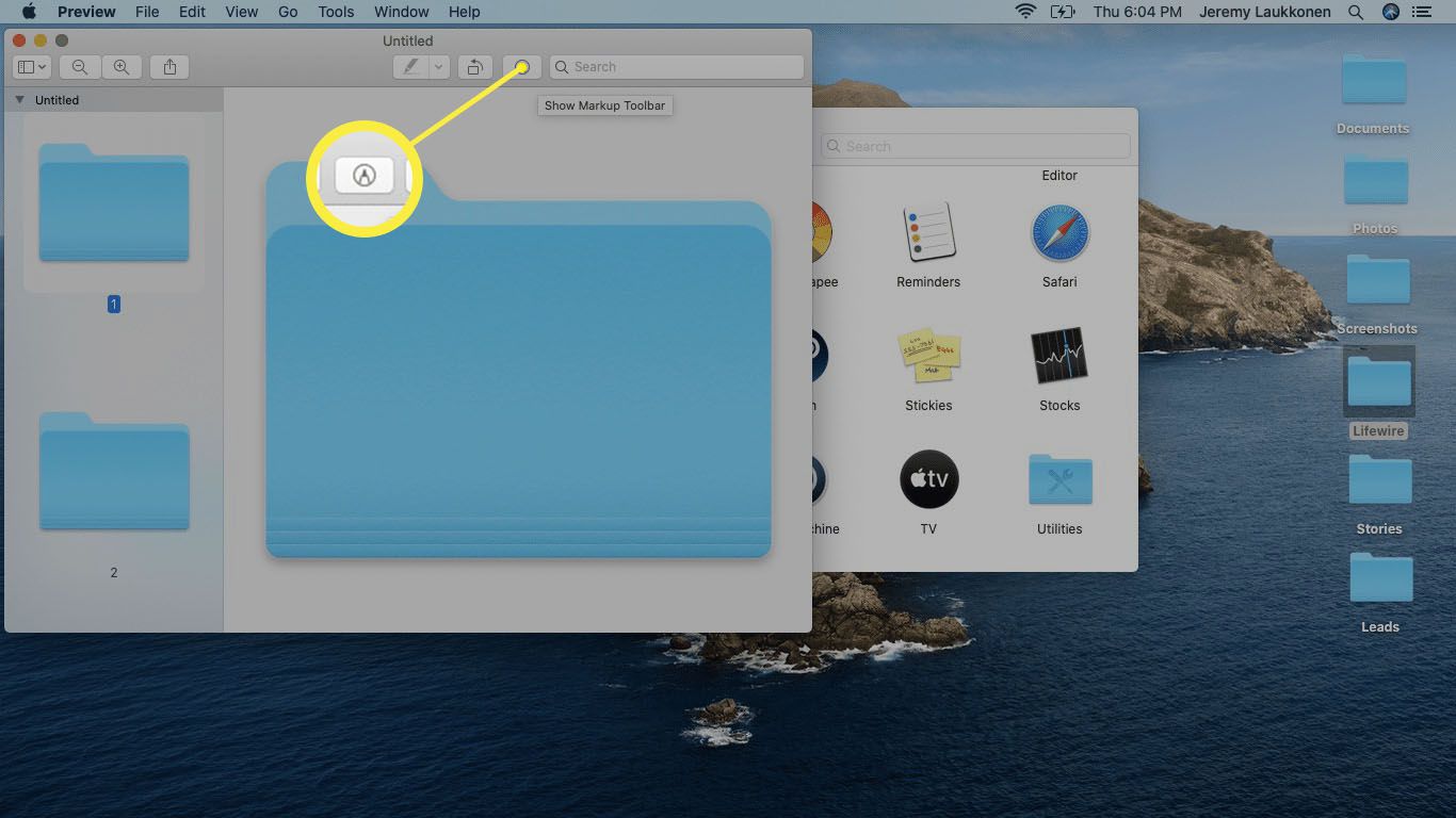 - First, copy folder > Preview app > go to File > New from Clipboard > Markup tool icon.