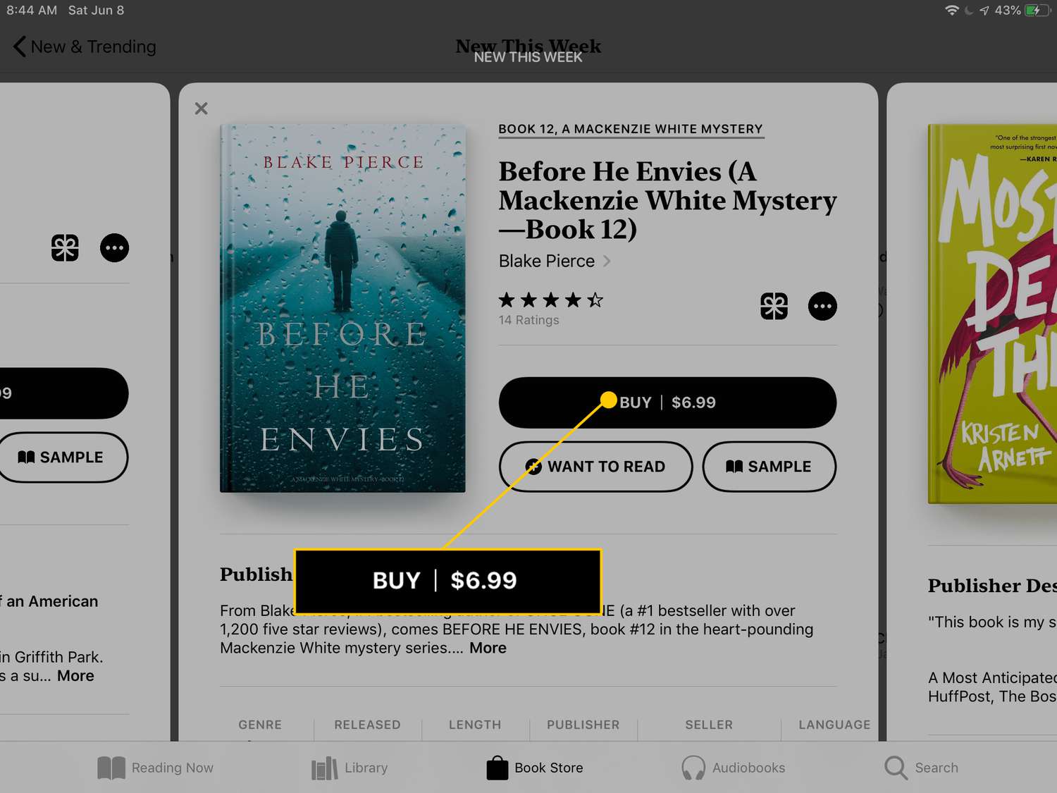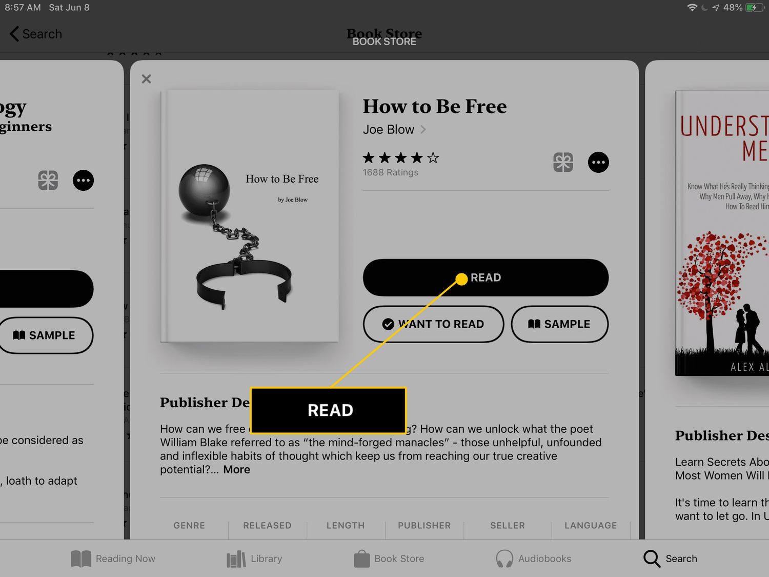 Before you buy e-books on your iPad or iPhone, tap the title to view details or preview or download a sample before committing to it.