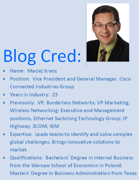 Maciej is the VP and General Manager of the Connected Industries Group (CIG) here at Cisco.