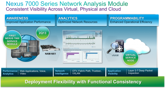 The Nexus 7000 NAM brings application-awareness and rich performance analytics. Network administrators get empowered with unparalleled actionable visibility into network to improve application performance and optimize network resources to help more effectively manage network operations and services delivery in cloud and virtualized deployments.