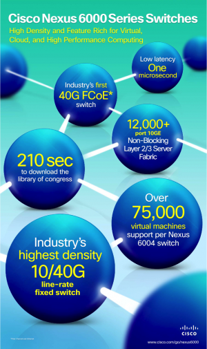 Following up on the introduction of 40GE/100GE on the Nexus 7000 Series, today we unveil the new Nexus 6000 Series, expanding Cisco's Unified Fabric data center switching portfolio in order to provide greater deployment flexibility through higher density and scalability in an energy efficient form factor.