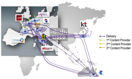 In Phase Two (December 2011 to June 2012), the concepts identified in Phase One were validated in a test-pilot setting. For this phase, Cisco IBSG worked with European service providers Telecom Italia, BICS, SFR, Bouygues Telecom, and Swisscom, as well as Korea Telecom in Asia and Telstra in Australia (see Figure 1). Phase Two proved that participating SPs can offer a robust alternative to pure-play CDNs, while creating new revenues and network cost savings.