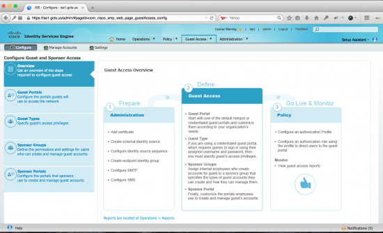 One of the new features that I really like is how the interface has been modified to centralize the portal configuration tasks and customization into a single location. The first thing you notice when you navigate to Configure Guest Access and Sponsor Access is that the interface is designed to make life easy. Three steps to Guest Access are overviewed and each step is clearly identified. We don't usually find this information in the user interface. Normally we're looking for this in an End User Guide or a Lab Guide for one of the courses I teach. So, in my opinion, this is a fresh new approach to making a complex device like ISE much easier to use.
