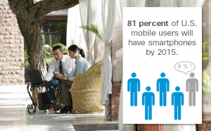 In order to transition to the cloud, hotels need to prioritize who uses the bandwidth to ensure that cloud connections are being used efficiently to support the day-to-day hotel operations. According to research by Gridley & Company, 81 percent of U.S. mobile users will have smartphones by 2015. This means that nearly every hotel guest will use their mobile device to connect to the Internet or Wi-Fi network during a hotel stay, resulting in a very crowded network and slow bandwidth. Knowing that guests will be on the network for most of their stay, hotels need to be sure there is enough room reserved for regular, day-to-day operations while still allowing that guest to watch his video.