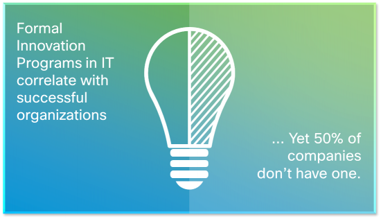 Successful companies have a formal innovation program in place. When it comes to innovation in the workplace, Nemertes research shows that successful companies have a formal innovation program in place -yet 50% of companies don't have one. Innovation programs reward employees for coming up with new ideas and pioneering new ways of doing business. Companies who reward innovation stay ahead of and lead the curve; companies who don't usually end up playing catch-up.