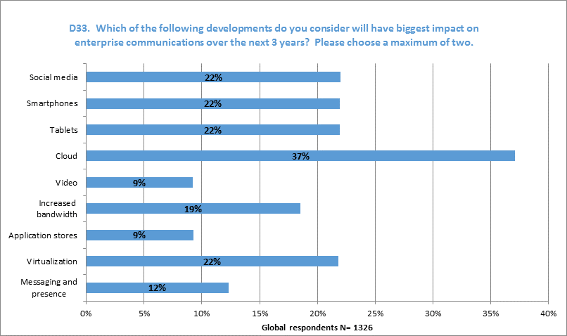 "Part of the reason we ran the survey, was to find out what buyers and end-users thought would have the biggest influence on the UC&C landscape going forward. From the survey results, it was evident that video, instant messaging and presence weren't considered priorities anymore," said Hill.