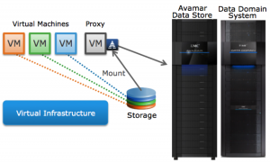 With EMC backup and recovery for the Vblock, your deduplicated backups can be workload and use case optimized to fit the needs of your data center, with flexible targets of Avamar Data Store or Data Domain Systems. With tight coupling to your virtual environment through VMware's vStorage API for Data Protection, Avamar allows you to not only protect your business critical applications running on your virtual infrastructure by setting up application specific backup agents, but also by setting up backup proxy VMs to offload your backup jobs away from your production environment.