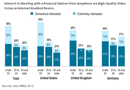 Various McKinsey research and studies have shown that those who adopt more client-centric tools and processes can increase revenues up to 20 percent and profitability up to 2.5 times. Cisco's own research has shown that wealth management firms that adopt client centric tools such as video can reduce client attrition, especially for the critical under-55 segment. Part of this transformation involves investing in video capabilities that enable firms and their experts to touch more customers, more often and in a more intimate manner than voice and email do today.