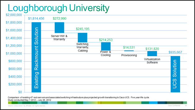 I recently worked with Loughborough University on a financial impact study of their initial deployment of Cisco UCS. The study documents their findings of a dramatic improvement in IT efficiency, bearing out the advantages that attracted them to the UCS solution. Loughborough's Customer Case Study has been revised with the results of this TCO study as well new details on the next stage of their deployment of Cisco Virtual Experience Infrastructure (VXI) Smart Solution.