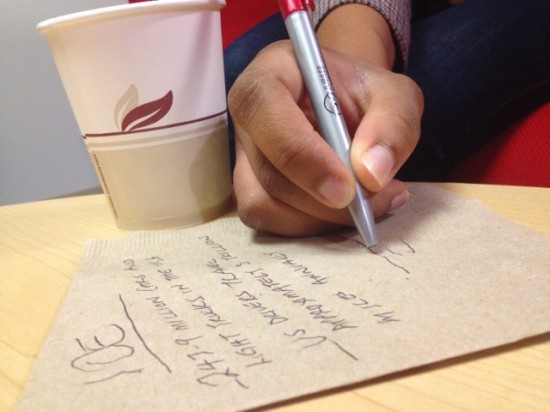 I'd scan in a copy of the actual napkin but you wouldn't be able to read it. (The one in this article is a recreation)