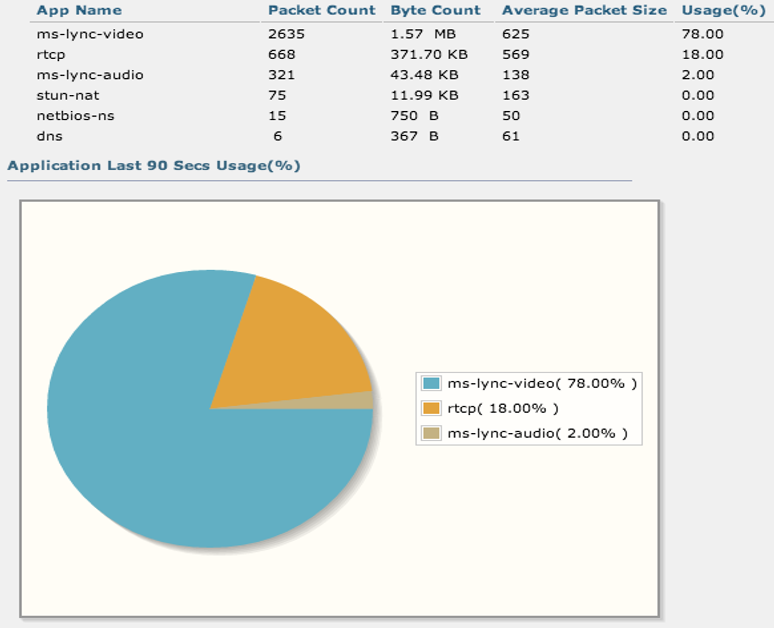 This picture shows how the controller WEBGUI displays Microsoft Lync traffic: