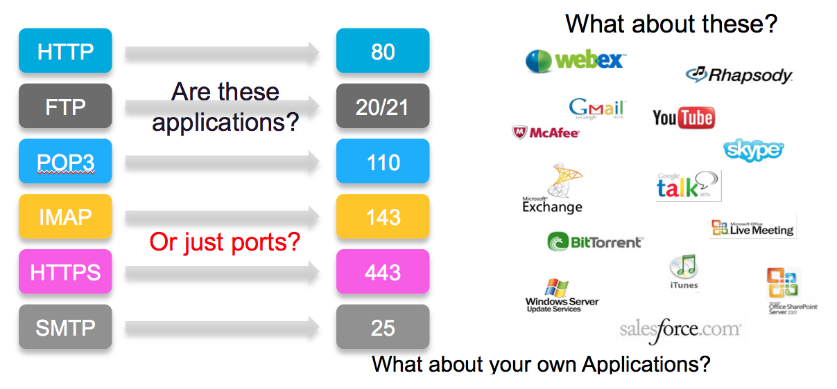 A: You're right, an application running on the top of the network is not new at all. But today, just being able to detect and know what are the applications running on the network is becoming more and more complex. We used to be able to detect application based on precise and unique information such as port type (for example, we all know HTTP is port 80). However, now a lot of applications are HTTP/HTTPS, including business critical applications on which the enterprise success is relying. Other applications may have different components in the same flow such as Audio, video and more. Finally, we have cloud applications and even Cloud VxI client delivery.