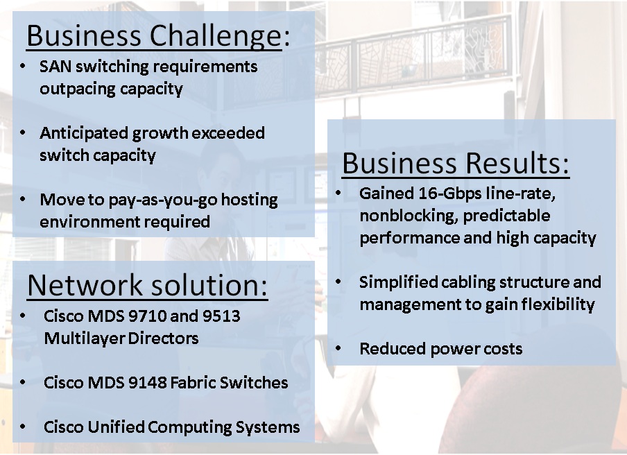 "We believe without a doubt that the Cisco MDS 9710 is the platform to go forward with," says King. "We expect it to last at least three years, like our previous Cisco SAN switches."