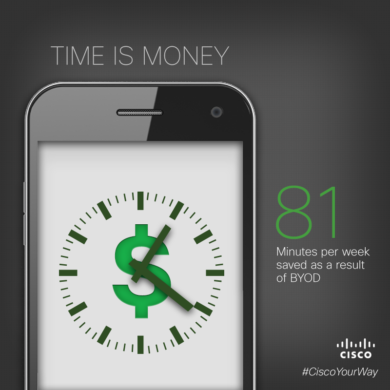 Earlier this year we announced the results of the Cisco IBSG BYOD Financial Impact study. The global research revealed interesting statistics about the financial impact of BYOD including: