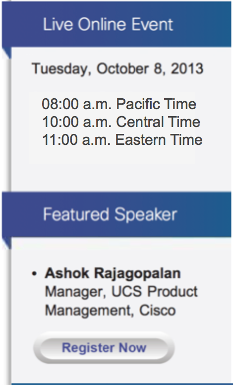 Our one-hour technical presentations will demonstrate how to build elements of the Cisco Unified Data Center platform. We will show you how to design your infrastructure and management for traditional and virtualized environments. You'll also learn about available services to help deliver it.