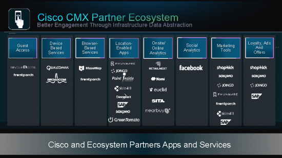 Since the launch of Connected Mobile Experiences (CMX), we have seen tremendous interest from our customers to monetize their investment in Wi-Fi Solutions and enable new line-of-business applications to gain insights, deliver efficiencies and engage end-users. This week Cisco is announcing a collection of technology developer partnerships, as managed through the Cisco Developer Network (CDN), that help us bring a "whole offering" to our Customers with the addition of domain expertise, geographical focus and technology feature infusion that gives our Customers confidence, security and operational excellence to move forward in this nascent market.