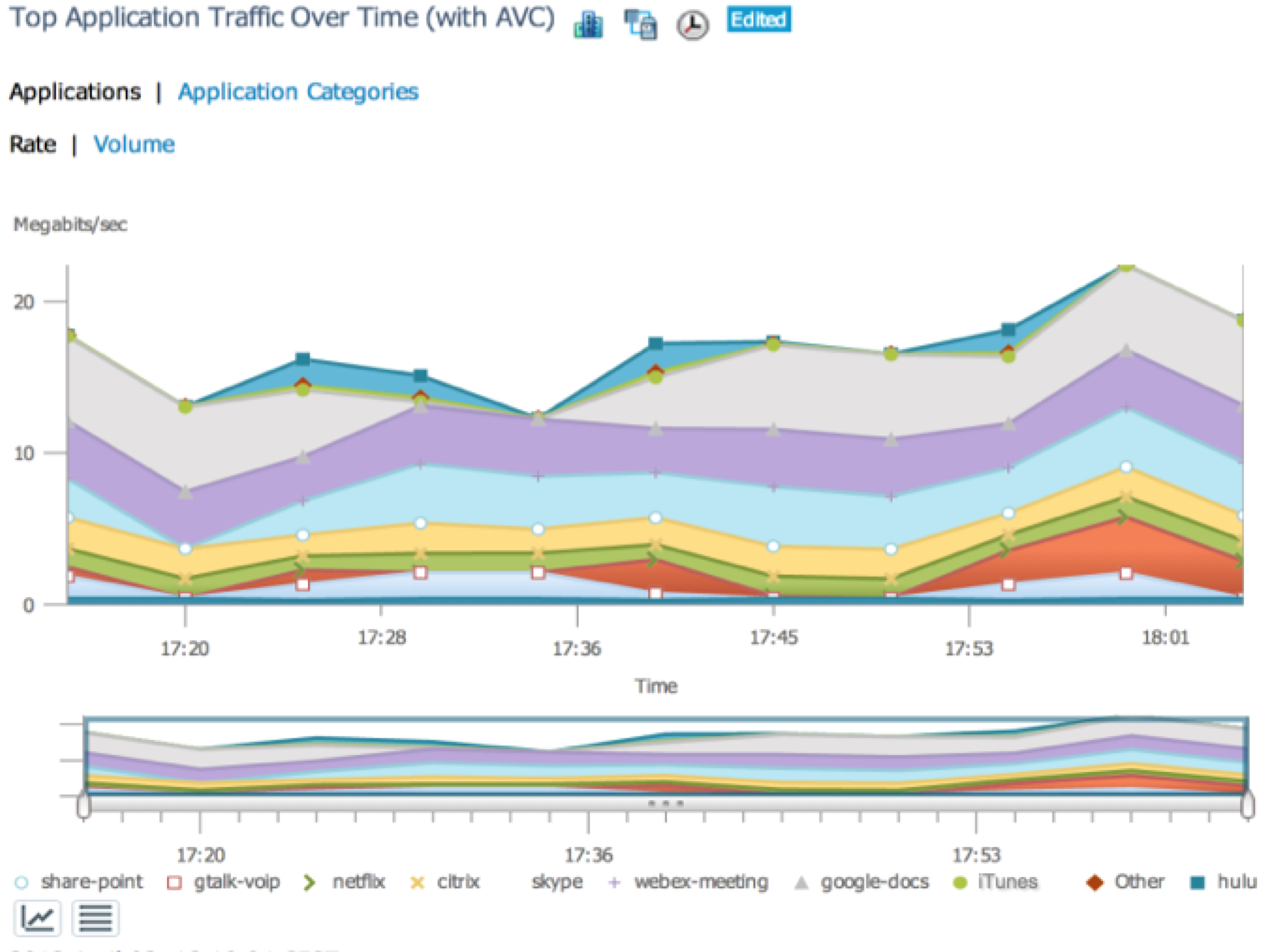You can also see these applications through the WLAN controllers. iOS and app updates will look like this in the controllers' management reporting. They also use the same AVC technology and will be categorized as 'iTunes'. For more information on how to get your wireless network ready for iOS7, read this blog post.